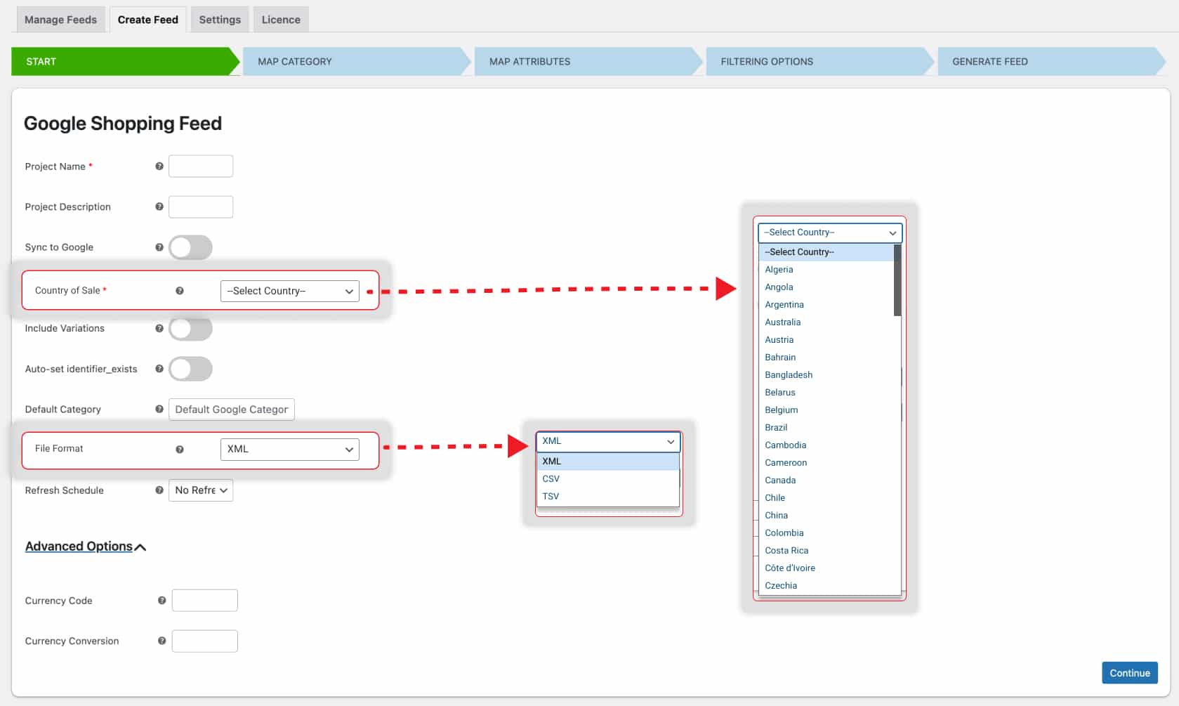 The plugin currently generates feed in XML, CSV, and TSV files.